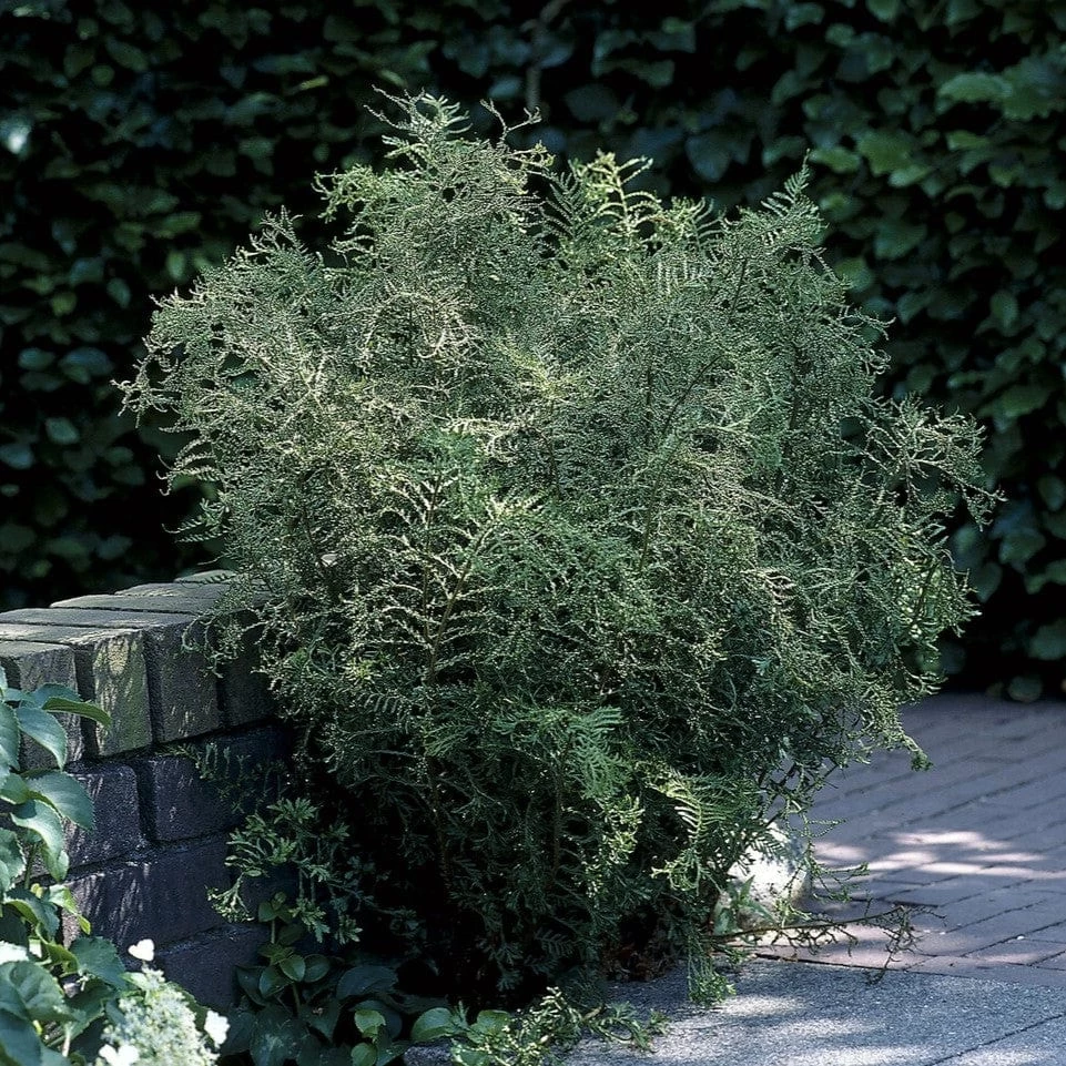- Dryopteris linearis polydactyla, commonly called Lace Fern, is a unique fern variety that stands out for its finely dissected, lace-like fronds. Its intricate foliage creates a delicate and ethereal effect, adding a touch of elegance to shaded borders or woodland gardens. This fern’s exceptional texture and form make it a popular choice for creating eye-catching contrasts in planting schemes.